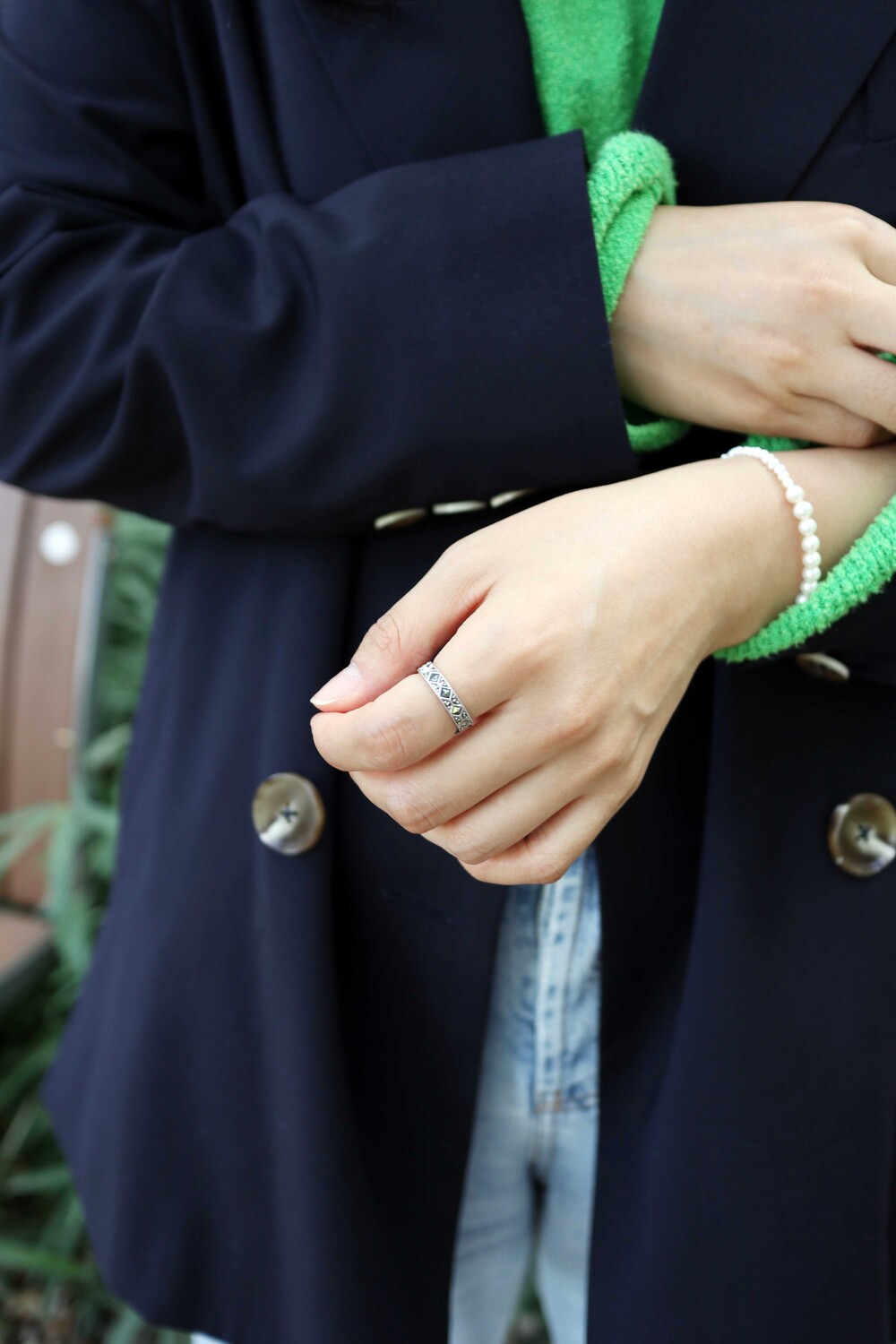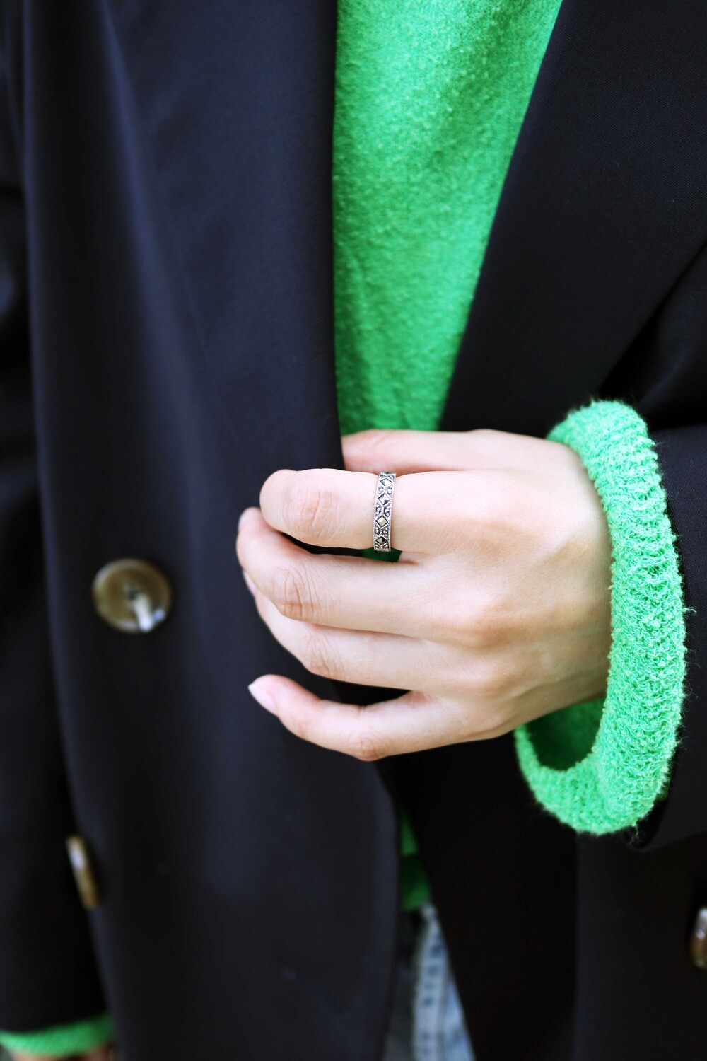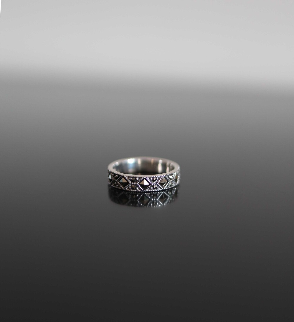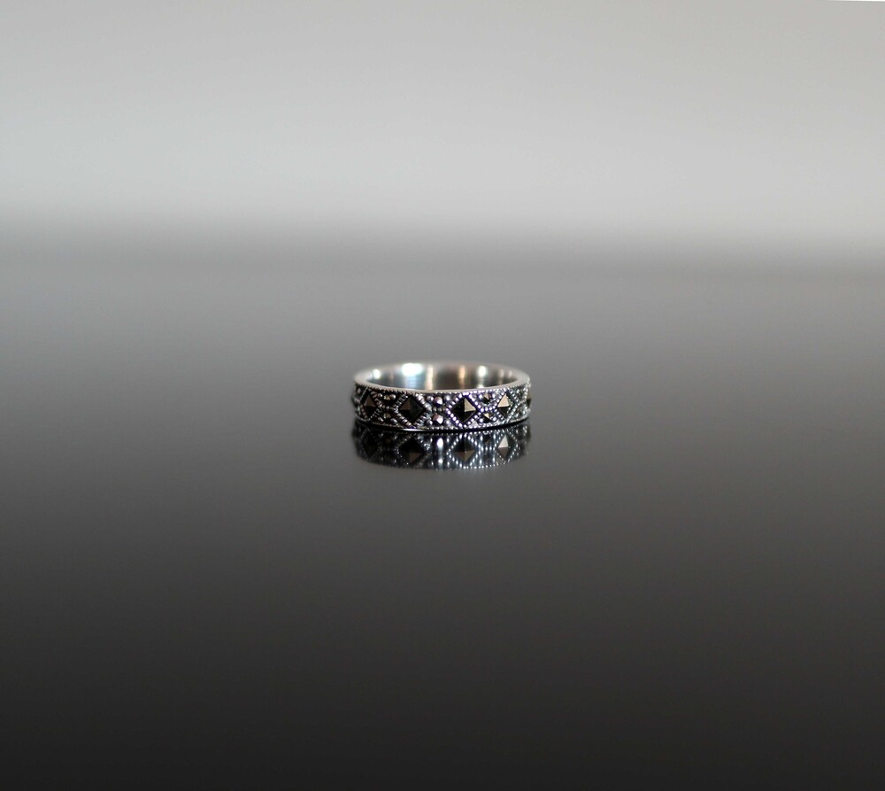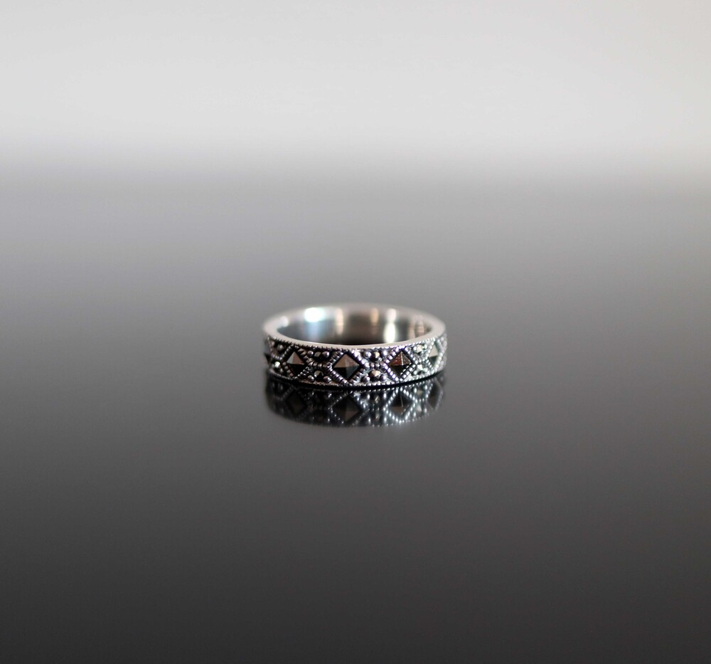 전체 실버 925와 블랙컬러의 천연 마카사이트 원석이 세팅된 빈티지하고 클래식한 무드의 링입니다.